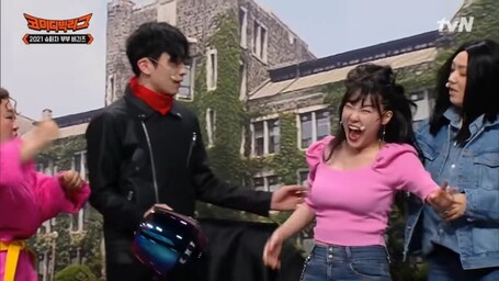 밝고 긍정적인 이미지 덕분에 여러 부캐(다른 이미지의 캐릭터)를 연기해 왔으며, 다채로운 매력을 선보이다가 뿅뿅 지구 오락실 시즌부터 더 많은 인기를 얻기 시작했습니다. 뿅뿅 지구오락실 시리즈는 미미, 이영지, 안유진과 함께 출연하는 프로그램으로, 현재 시즌3의 제작이 예정되어 있습니다.