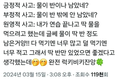 러키비키잔앙!라는 말이 유행처럼 번지고 있습니다. 이에, "러키비키잔앙"이무슨 뜻인지, 원영적 사고가 어떻게 유행하게 되었는지 말씀리겠습니다.