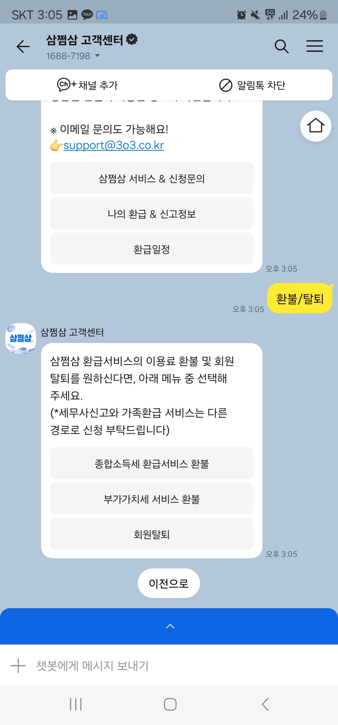 위의 페이지는 삼쩜삼 고객센터-환불&탈퇴-회원탈퇴에서도 같은 페이지 주소를 받으실 수 있습니다.