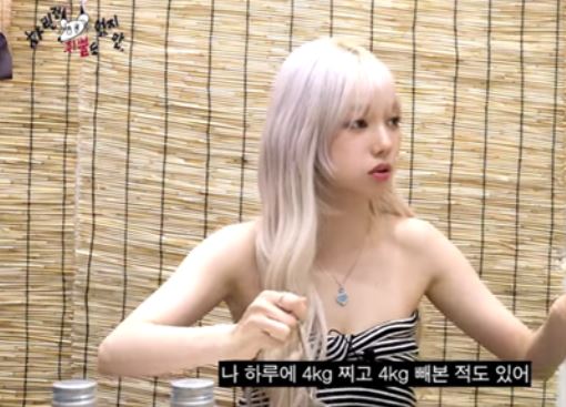 카리나가 하루에 4kg만큼 찌고 4kg만큼 뺏다면서 고무줄 무게라고 소개되었습니다. 앞서 대식가 파트에서 언급되었듯이 카리나는 먹고 싶은 대로 먹는 대신 운동으로 칼로리를 소비하는 스타일입니다. 먹어서 살이 안 찌는 스타일이 아닙니다.